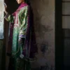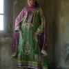 An exquisite blend of tradition and luxury, this green long straight kameez crafted from pure raw silk is paired with sleek silk shalwar. The kameez features a unique composition of two block prints, accented by contrasting block-printed borders along the hem and sleeves, while a velvet patch at the neckline adds an elegant texture. Adorned with intricate gota and zardozi work, and finished with Indian golden gota kingrees and contrasting piping, this outfit exudes sophistication. The shalwar’s paincha complements the look, detailed with block-printed borders, Indian gota lapas, and golden gota kingrees. Note: Duppata price is not included.
