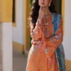 Inspired by the golden hues of an Italian summer, this unstitched lawn ensemble captures warmth, charm, and effortless sophistication. The vibrant orange lawn shirt is adorned with delicate multi-tone embroidery in shades of aqua, blush, and soft ivory — reminiscent of coastal tiles and hand-painted Mediterranean motifs. Intricate detailing across the neckline, sleeves, and hem adds depth while keeping the silhouette light and breathable. The look is elevated with a contrasting printed dupatta in refreshing turquoise and blue accents, framed with statement borders and playful tassel detailing echoing the romance of seaside towns and sunlit courtyards. A perfect balance of bold color and refined craftsmanship made for summer festivities, brunches, and destination evenings.