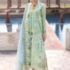 - Pair of Green embroidery on organza for dupatta.
