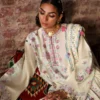 The canvas blooms with intricate floral embroideries in tender shades of pink, sage, lavender, and ivory — like blossoms preserved in time. Paired with a breezy Swiss voile dupatta, framed with dainty embroidered flora on all four sides, this ensemble captures the spirit of slow summer days and intimate garden soirées.