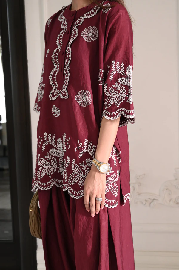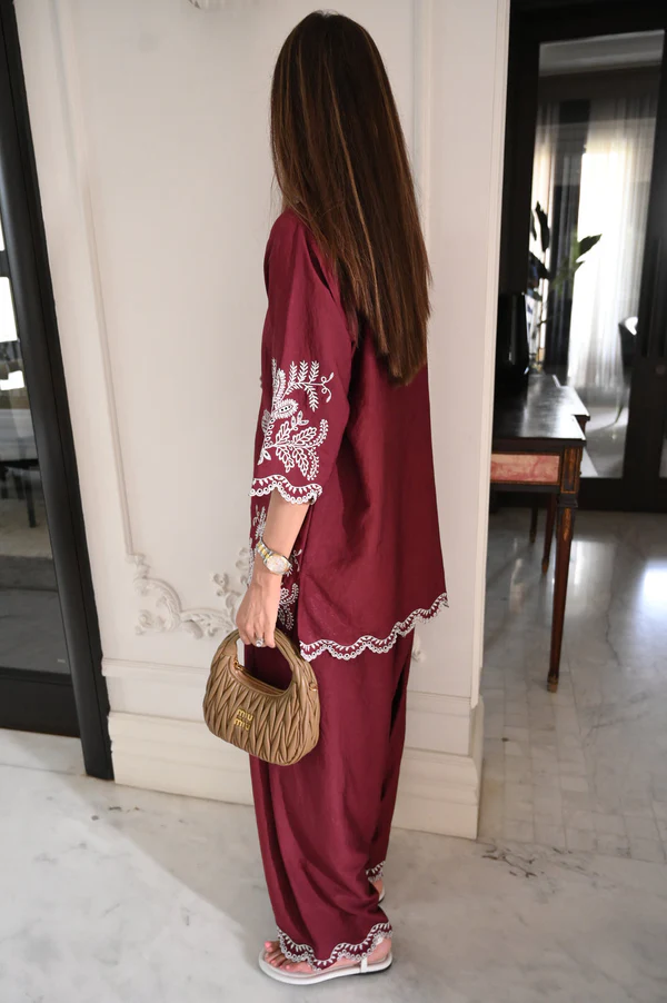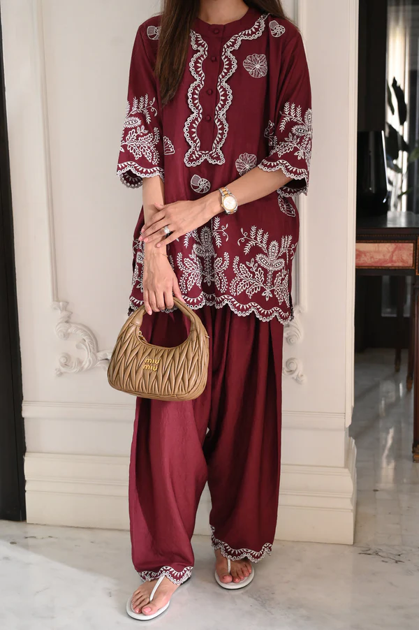 Features a fully embroidered in-house shirt, beautifully paired with an embroidered farshi shalwar.