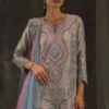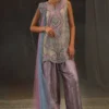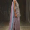 Radiating an otherworldly charm, this shimmering zari net shirt is paired with a regal jamavar farshi shalwar, creating a silhouette steeped in tradition yet alive with modern grace. The shirt is a canvas of meticulous hand embroidery—delicate florals, scrolling vines, and jewel-like accents that glisten in soft pastel hues. Comes with an embroidered banarsi farshi shalwar. Draped over the shoulder, the ombré net dupatta fades from rose to sky, its edge anchored with an intricately beaded floral motif that mirrors the embroidery’s poetry. Light, fluid, and luminous, this look is made for festive evenings where elegance must speak in whispers, not shouts.