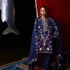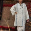 Paired with straight khaddar pants that ground the look in quiet strength, the ensemble finds its final breath in an acrylic dupatta — light, lyrical, and air-touched — washed in soft winter hues and bordered with subtle tribal accents.
