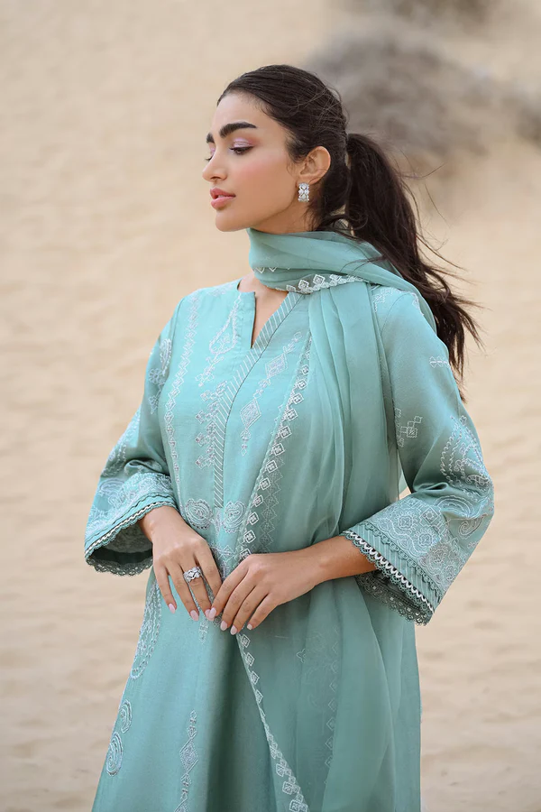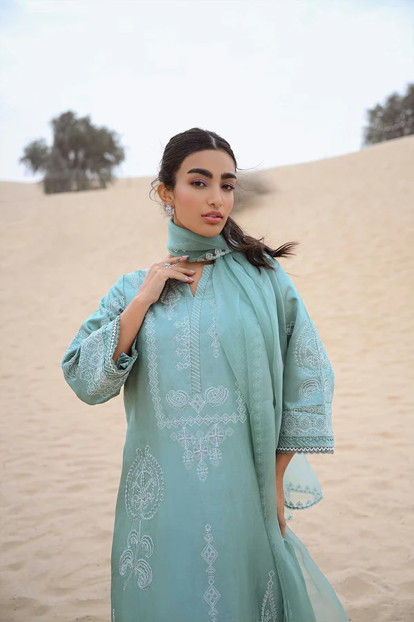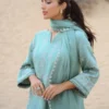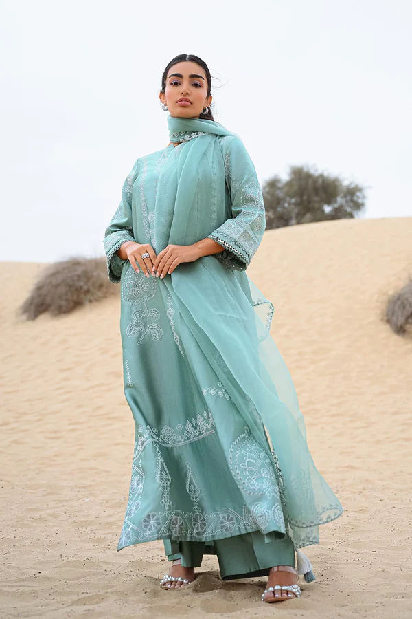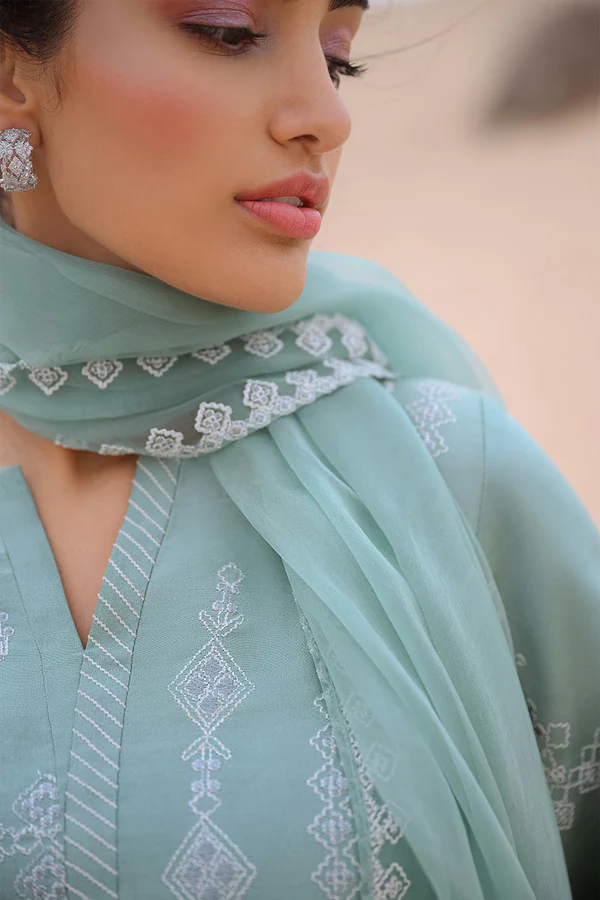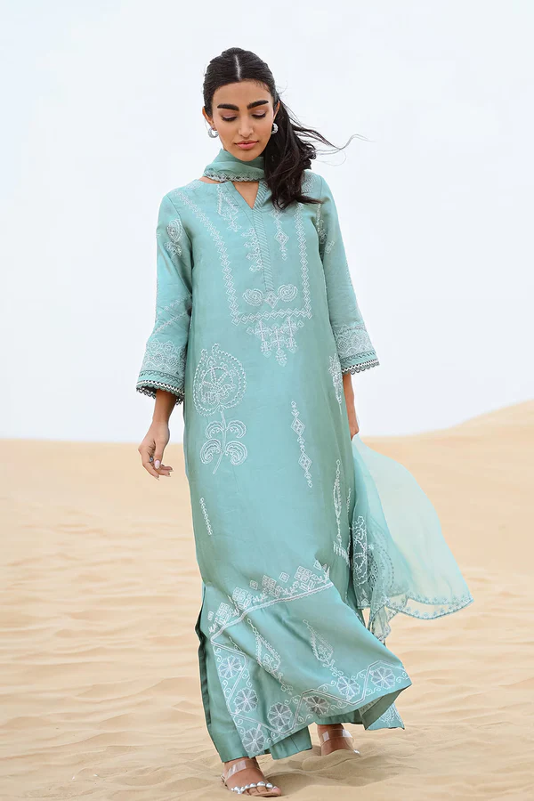DESCRIPTION: This elegant ensemble is tailored from luxurious tissue silk fabric, beautifully enhanced with organza embroidery and intricate resham detailing along the bottom.
