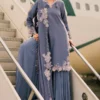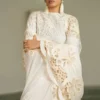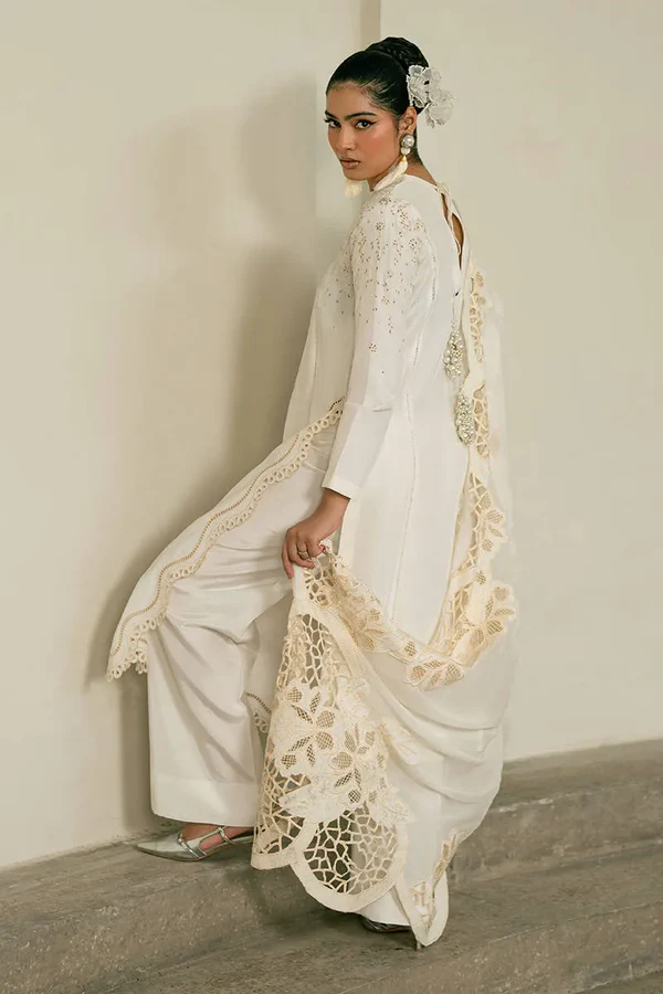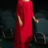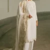 A luxurious silk shirt paired with tailored silk straight trousers, complemented by an exquisitely embroidered chiffon dupatta for a refined and elegant ensemble.