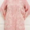 A dreamy baby pink pashmina co-ord set with intricate and dainty white embroirdery, this set can be dressed for a formal event or a casual lunch.