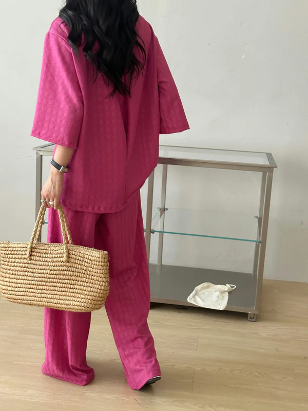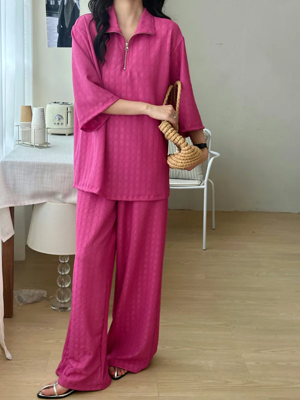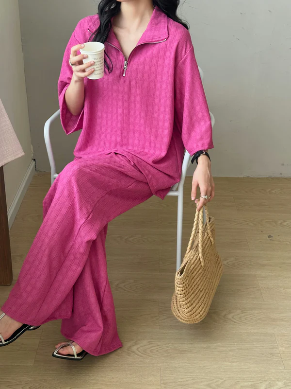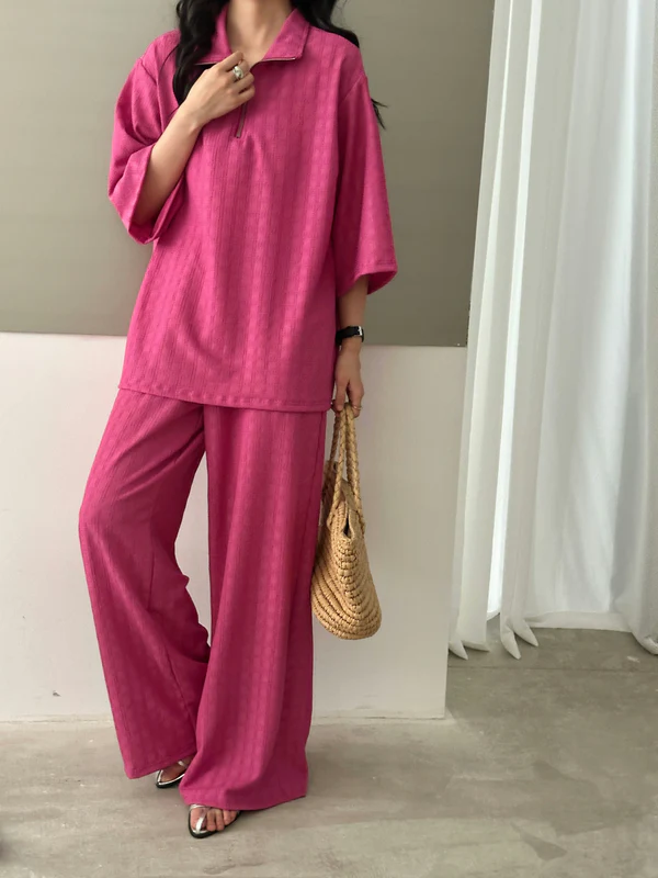 Raha Fuchsia Textured Suit With Zipper | HS-1244