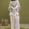 The dupatta is printed in midnight blue with paisley motifs and a moss green border. The shirt features midnight blue and white art nouveau inspired prints. The trouser is finished in solid midnight blue.