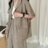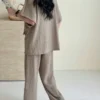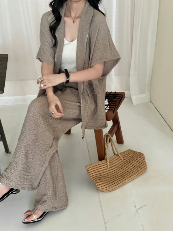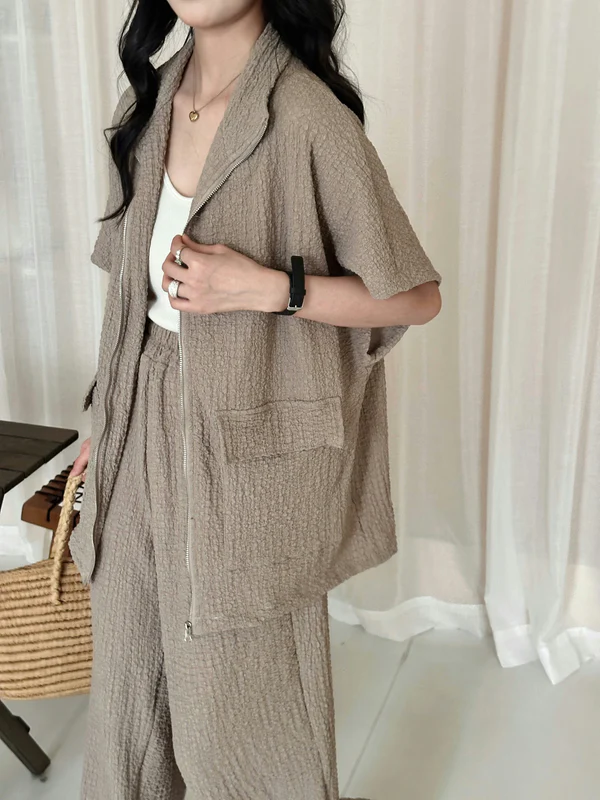 Roohi Mocca Mousse Textured Suit With Full Zipper | HS-1242
