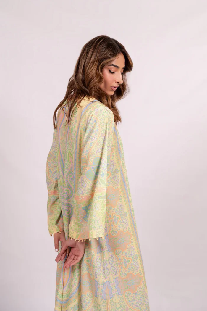 A printed relaxed fit kaftan in a non see through grip gorgette fabric.