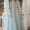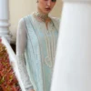 This elegant sky blue paper lawn kalidaar features intricate embroidery and sequin work on the neckline and dupatta. Paired with printed azaar pants, it offers a chic look. The lightweight, beautifully embroidered dupatta adds grace and comfort, making it perfect for any occasion.