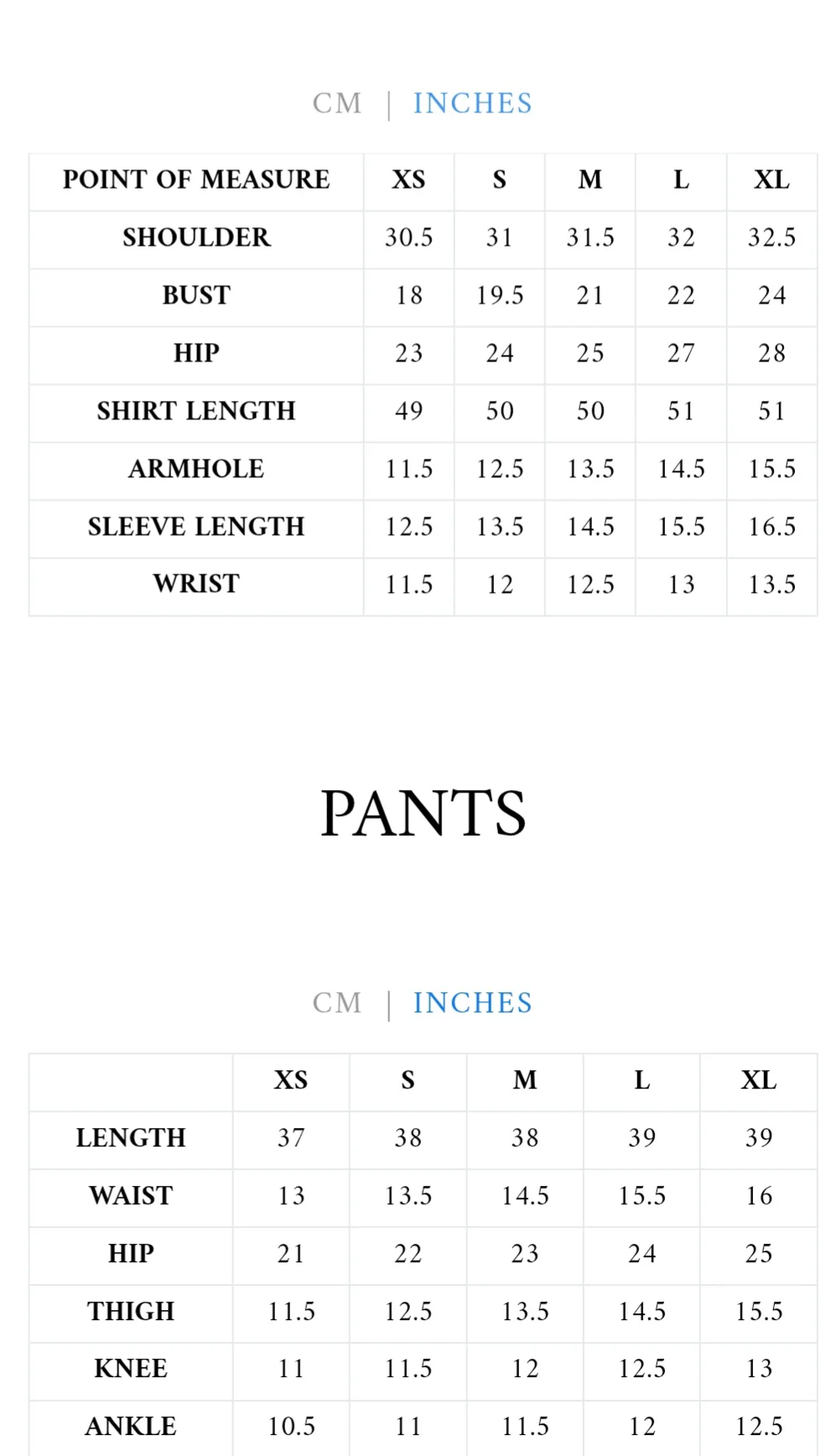 | Size | XS, S, M, L, XL |
