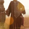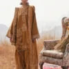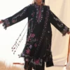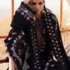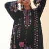 Sehyr — a wild midnight bloom brought to life on a jacquard khaddar shirt and trouser, draped in a soft woolen shawl. Untamed florals and storm-lit stitches ripple across the fabric, echoing the fierce, free heartbeat of winter. Moody, bold, and effortlessly wild — Sehyr is for the woman who moves through winter like a storm of style.