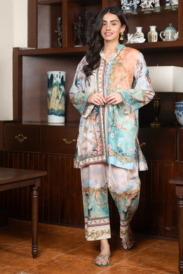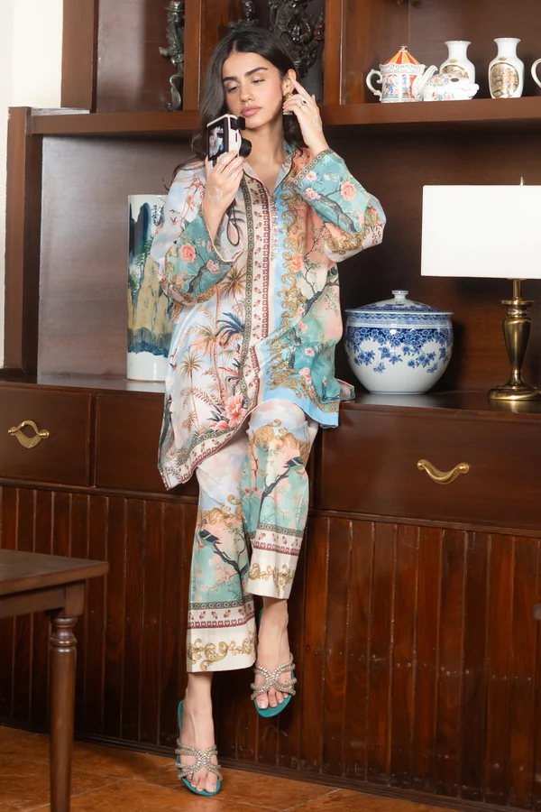 Soft printed lawn matching separates showcasing tropical palm prints, paired with flowy culottes for effortless everyday elegance