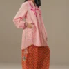 A bright orange cambric short shirt with subtle embroidery, paired with a matching barrel shalwar. Colorful, easy to wear, and full of playful details, this set brings a fresh, modern vibe to everyday styling.