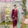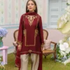 A Signature Look from Our Festive Zarayna Collection is this stunning three-piece set features a short shirt and shalwar in pure sheesha silk, paired with a pure sheesha organza dupatta.