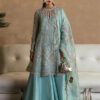 - Organza dupatta with printed four-sided border, sequins, pearls, and mirror tassels.