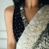A striking blend of black and pastel ivory crafted with intricate embroidered and hand-embellished detailing. The contrasting tones create a bold yet graceful aesthetic. A refined statement ensemble perfect for formal gatherings and festive soirées.