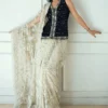 A striking blend of black and pastel ivory crafted with intricate embroidered and hand-embellished detailing. The contrasting tones create a bold yet graceful aesthetic. A refined statement ensemble perfect for formal gatherings and festive soirées.