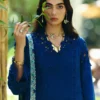 - Dupatta: Chiffon cobalt blue dupatta with four-sided border in aqua greens/blues. Floral spring embroidery, finished with tassels.