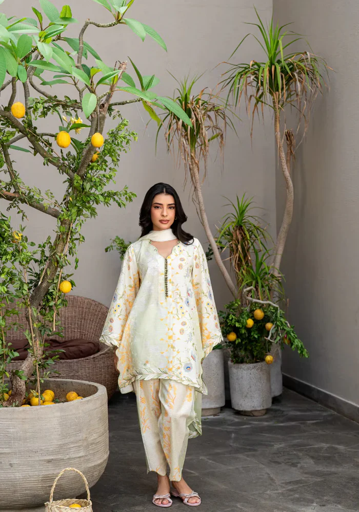 Pure Lawn printed set Includes a printed shirt with embroidered details and shalwar Fabric: Pure Lawn Suited for summer *The colour of the article may vary from the picture