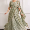 A soft hued lehnga and choli quintessentially crafted with scalloped and pleats detailing. Get the perfect Sangeet look in Zia!